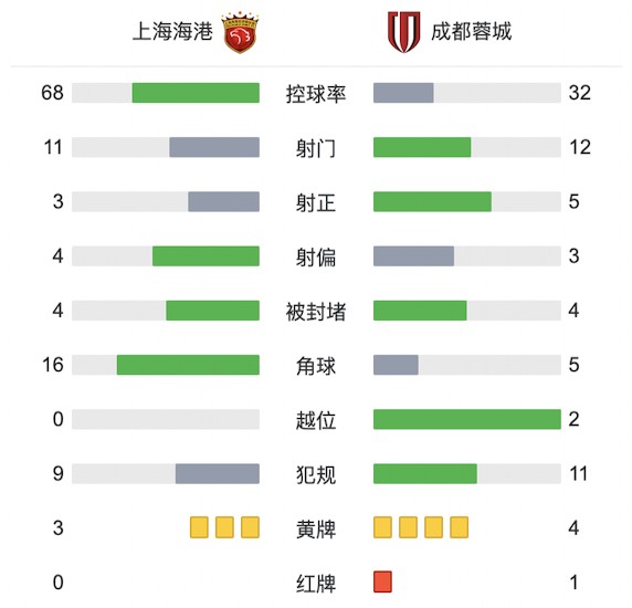 北京时间6月3日17:30,中超第11轮比赛,上海海港在浦东足球场对阵成都蓉城。本场比赛的主裁判是傅明,VAR裁判是金京元。上半场,成都反客为主打出更多攻势,罗慕洛开场后不久伤退,帕拉西奥斯登场后就制造威胁,双方比赛中对抗激烈火药味十足,颜骏凌贡献扑救,最后时刻帕拉西奥斯、武磊和艾克森分别错失机会;下半场,双方各有攻势,费利佩和帕拉西奥斯都制造出了很好的进攻机会,武磊和奥斯卡射门中框,冯卓毅对奥斯卡犯规被红牌罚下,补时阶段成都抓住机会由帕拉西奥斯完成绝杀,随后武磊门前绝佳机会但被张岩扑出,最终海港0-1十人成都,遭遇赛季首败。