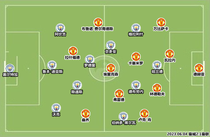 基于堆积高大以搏命的思路,滕哈格最后用麦克托米奈换下林德勒夫,只留下三名后卫应付曼城的攻势,京多安多次利用聪明的跑位捕捉空当,险些上演帽子戏法。提前三轮夺得联赛冠军,曼城不需要像2021/22赛季那样经历收官战的惊魂时刻,京多安获得轮休机会,他的经验和射术成为了曼城在关键战中的法宝。