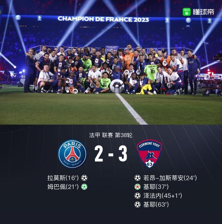 剑南春丨巴黎2-3克莱蒙,姆巴佩蝉联金靴,拉莫斯告别战破门