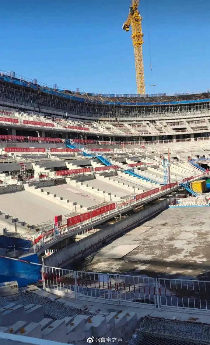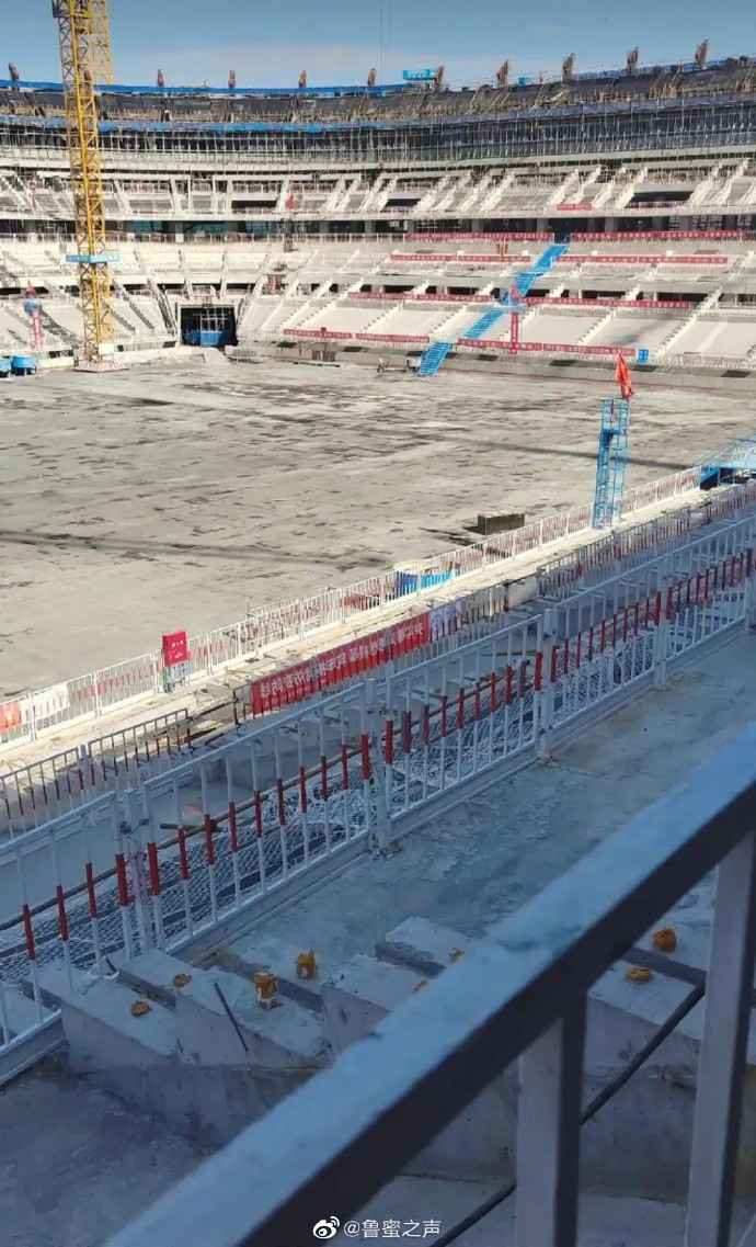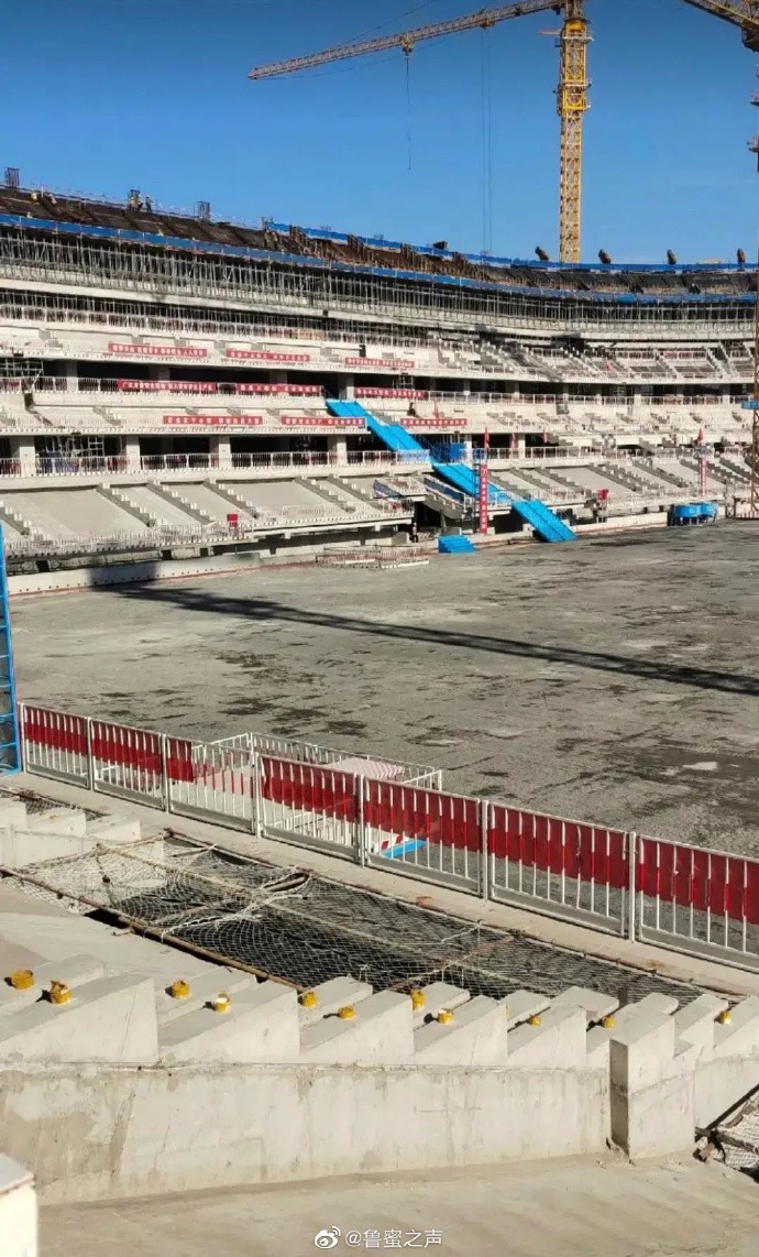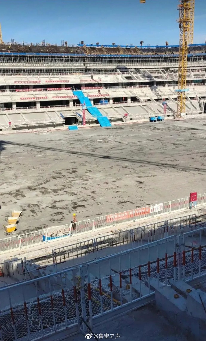 据博主“鲁蜜之声”分享的图片显示,目前济南黄河体育中心专业足球场,内场看台部分正在紧锣密鼓地建设当中。