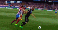 28.2017年5月2日,欧冠半决赛首回合皇马3-0马竞,本泽马扛开马竞后卫,助攻C罗爆射得分。