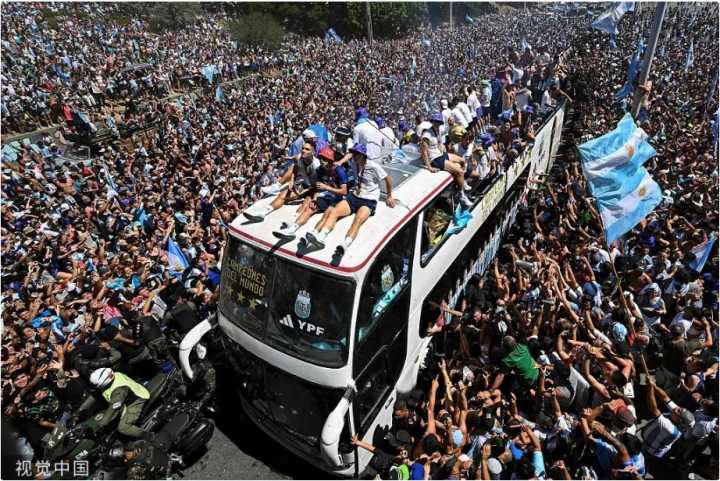 2022卡塔尔世界杯后,阿根廷队载誉回国