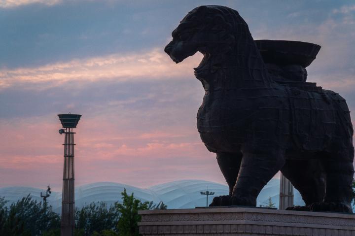 第一时间赶到球员酒店完成部分签名合影后,我们再次回到球场寻找复刻版铁狮子。原版铁狮子近期维修修复看不了了,好在球场边上的狮城公园也有一只。使用长焦镜头,可以拍出狮子傲立球场的画面。
