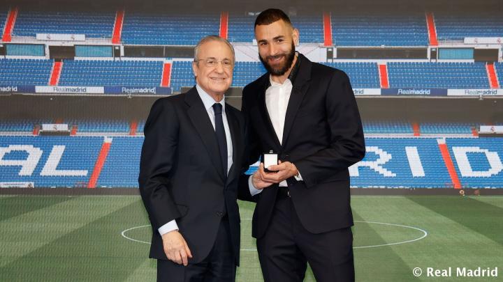 “亲爱的卡里姆,今天也是一个值得高兴的日子,你将作为传奇之一载入皇马史册。你已赢得一切,但我们也记得你是如何获得的。在皇马,没人赢得的荣誉比你多,你以金球奖得主的身份为皇马生涯画上句号。亲爱的朋友们,今天他将成为我们历史上最不可思议的球员之一。