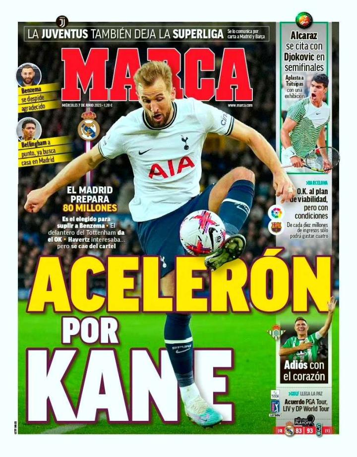 《马卡报》封面消息表示,皇马想快点签下凯恩,皇马...天天向上Football @懂球帝2023-06-07 10:33《马卡报》封面消息表示,皇马想快点签下凯恩,皇马提供了一份8000万欧元的报价,凯恩已经答应了。另外,贝林厄姆已经开始在马德里找房子了。展开更多