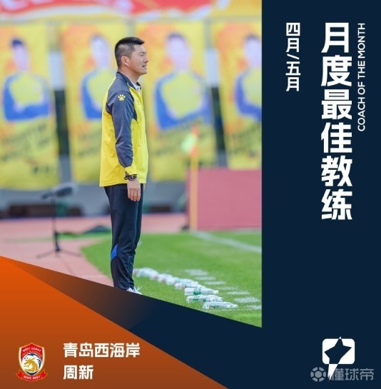 北京时间6月7日,中甲联赛官方宣布,青岛西海岸队主教练周新当选中甲4/5月份最佳教练。