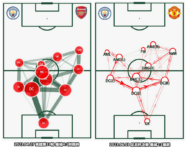 (图)限制跨区域流动,用控球规避拉锯和对抗,瓜迪奥拉的战术设计降低了“巨人阵”的整体消耗,保证了他们在一对一较量时的优势,也减少了频繁换人带来的风险。