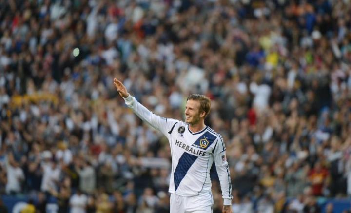 (图)贝克汉姆在效力洛杉矶银河队的最后一场比赛中向球迷们挥手致意