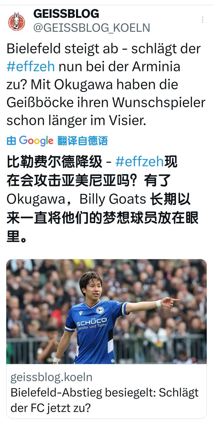 GEISSBLOG消息,科隆希望免签效力于比勒菲...芳雪愁言 @懂球帝2023-06-08 17:06GEISSBLOG消息,科隆希望免签效力于比勒菲尔德的日本国脚奥川雅也,比勒菲尔德已经不幸从德乙降级到了德丙。展开更多