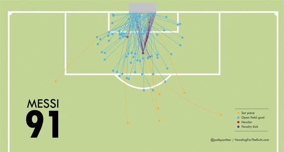 这73个进球中,梅西在联赛中攻入50球,打破了西甲单赛季进球纪录;在欧冠中打进14球;国王杯中打进3球;世俱杯中打进两球,西班牙超级杯中打进3球;欧洲超级杯也有1球入账。如此数据一举让盖德·穆勒尘封40年的纪录作古,使梅西独享足坛历史赛季射手榜首位。
