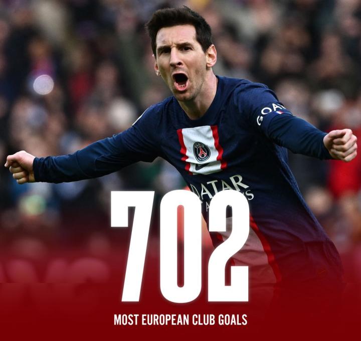 当地时间4月9日,巴黎圣日耳曼在客场2:0击败尼斯,梅西在那场比赛首开记录,他代表欧洲俱乐部进球数也达到了702个,正式超越C罗成为足坛首位。