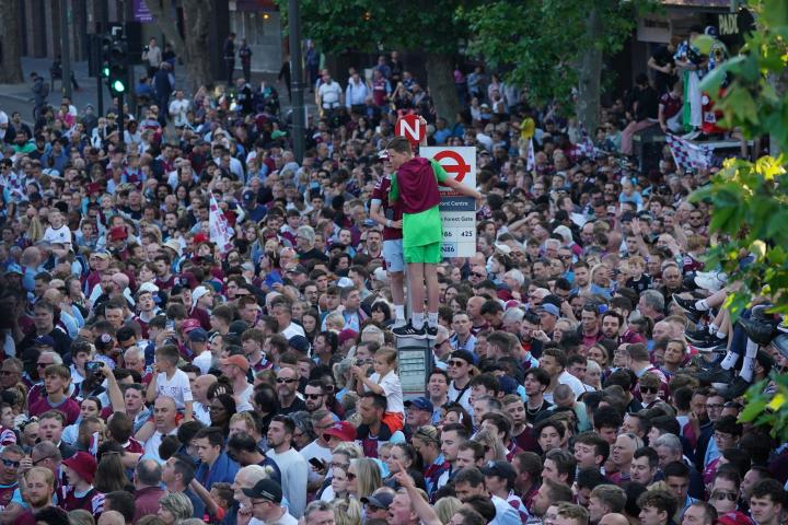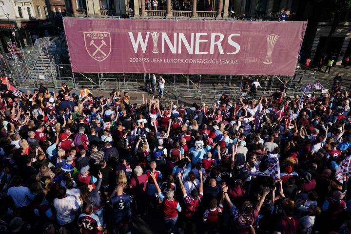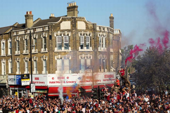西汉姆联的夺冠游行声势浩大,超过7万球迷走上街头,参加球队的冠军游行,导致东伦敦交通瘫痪。