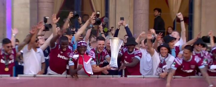 铁锤帮通过举办盛大的冠军游行来庆祝他们的英雄回归,西汉姆球迷则在灿烂的阳光下心情愉悦,迫不及待地向球星致意,将他们的名字牢牢地刻在历史书上。