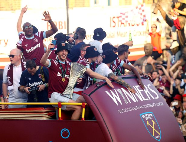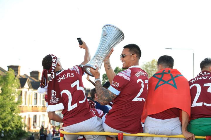 我们是冠军!数万名西汉姆联球迷参加盛大的冠军游行