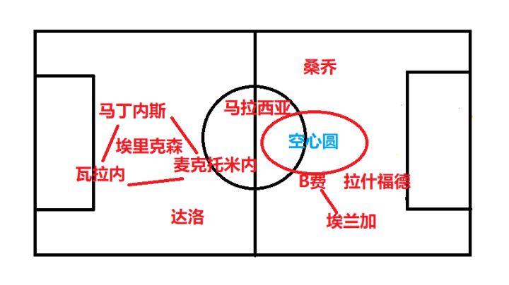 在空心圆被填充前,曼联中锋体系与拉什福德踢中锋的体系(两者完全不同)存在着明显的上限问题,只能说足够争四。马夏尔复出后,曼联在中锋体系与拉什福德踢中锋的体系来回切换,标志是加纳乔顶替中锋替补出场。加纳乔替补出场,拉什福德去中路这一套组合拳往往能够带动曼联在比赛末段的反攻。