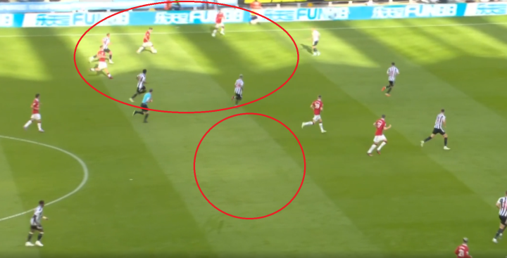 无论是内收成边后腰的达洛还是几乎可以顶到锋线掩护拉什福德的万比萨卡,曼联右后卫身后一定存在可以被穿插的空间。多伤的瓦拉内、移动能力进一步下滑的卡塞米罗都很难保证这个空间的绝对安全。