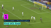 5.2005年11月2日,巴萨5-0帕纳辛纳科斯,梅西攻入个人欧冠首球。