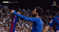 45.2017年12月23日,巴萨客场3-0皇马,梅西传射建功,点射破门后经典庆祝。