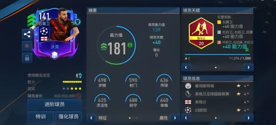 ○ 欧冠活动中推出的这张欧冠冠军之路版本沃克基础能力值为139,随着曼城的一路晋级,他目前已经提升为该系列最高的141能力值。