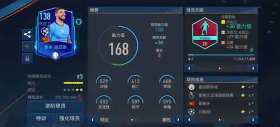 ○ 欧冠活动中推出的这张欧冠冠军之路版本阿克基础能力值为135,但目前随着曼城的一路晋级,他已经提升为了138能力值。
