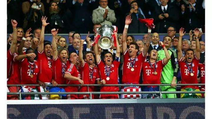 首先是2012-2013赛季的欧冠决赛,比赛场地是在伦敦的温布利大球场。这也是一场德国国家德比,来自德甲的拜仁慕尼黑对阵多特蒙德。当时两队的主教练分别是海因克斯(拜仁慕尼黑)和克洛普(多特蒙德)。拜仁在淘汰赛中先后淘汰了阿森纳、尤文图斯和巴塞罗那,尤其是半决赛对阵巴塞罗那,两回合7比0的优势也是彰显了拜仁当时恐怖的战力。而多特蒙德则是在淘汰赛击败了顿涅茨克矿工、马拉加以及皇马晋级到了决赛。