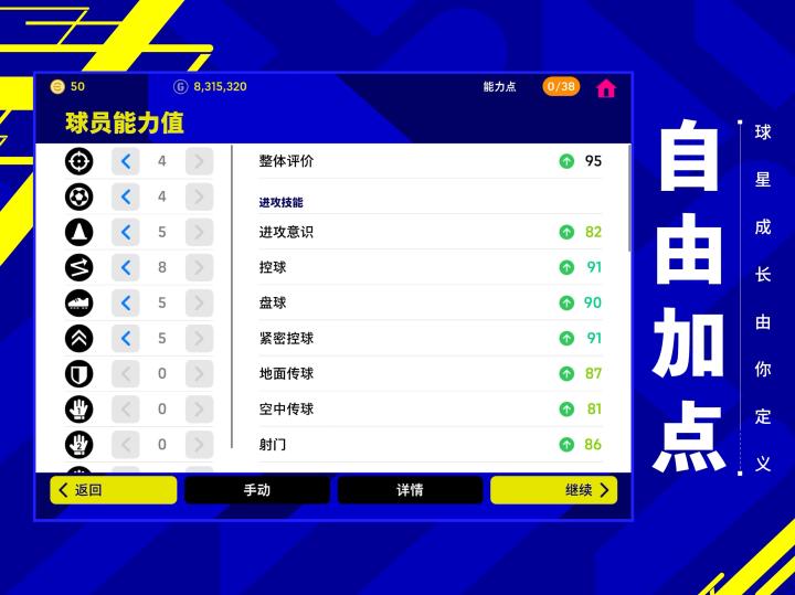 实况足球新功能上线,自由加点打造足坛最强球员!