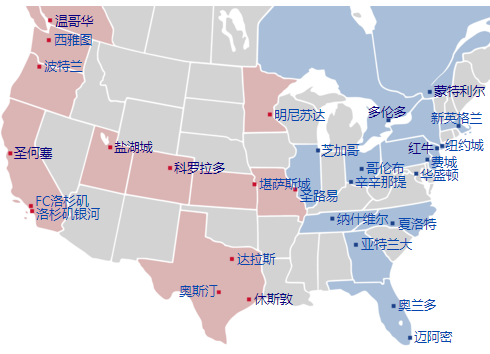 美职联的29支球队,有26支球队来自美国,还有3支球队来自北方的邻居加拿大。