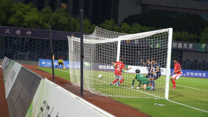 第52分钟,程鑫前场断球,在禁区边缘晃过数名防守球员后,推射死角破门得分,3:0。