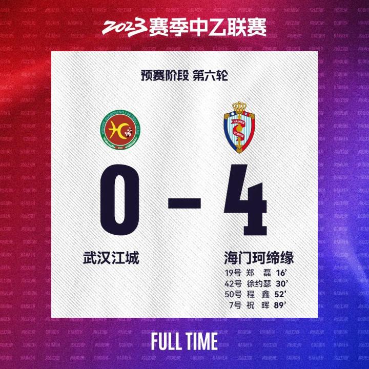 本场比赛,武汉迎来了35度的高温天气,比对手少休息一天的海门珂缔缘克服天气及赛程的不利,反客为主打出了压倒性的优势。上半场,郑磊、徐约瑟打入两球为球队打开胜利之门;下半场程鑫、祝晖的进球帮助球队锁定胜局,最终海门珂缔缘以4:0的比分大胜武汉江城,并在积分榜上力压对手挤入冲甲组。