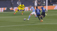 下半场,阿坎吉接球失误酿成大错,劳塔罗单刀直面埃德森。但是,在角度有限的情况下,阿根廷前锋选择了自己射门,而不是分给中路的卢卡库——埃德森将球封出,国米错失绝佳机会。此时,比赛进行到60分钟,蓝黑军团的射门次数,甚至领先于曼城。