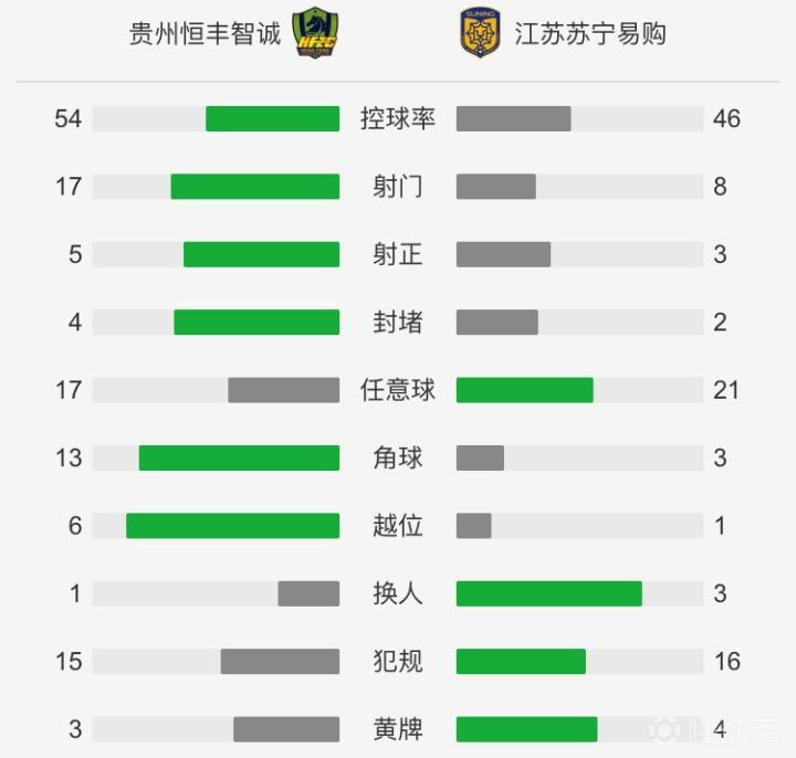 全场比赛结束,贵州恒丰智诚主场2-2战平江苏苏宁易购。