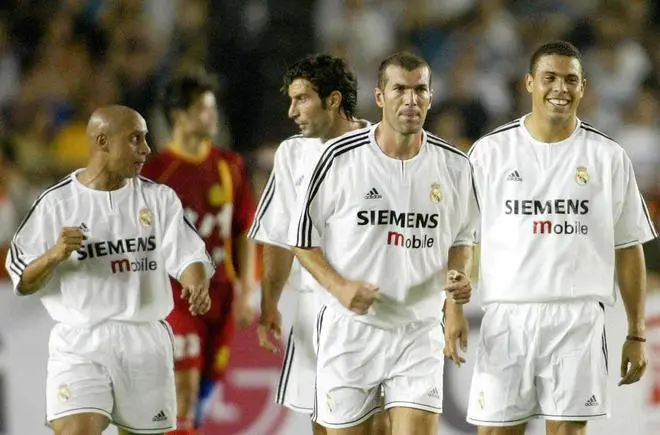 皇马(4-4-2):1-卡西利亚斯/2-萨尔加多、22-帕文、6-埃尔格拉、3-卡洛斯/23-贝克汉姆、24-马克莱莱、5-齐达内、10-菲戈/11-罗纳尔多、7-劳尔