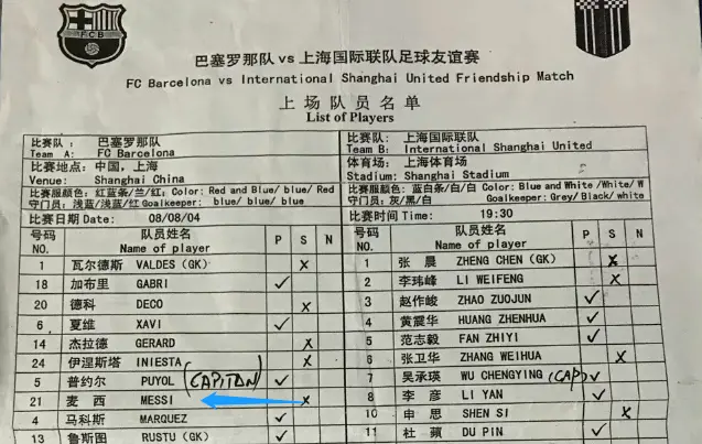 梅西第一次随巴萨来华是在2004赛季,当时他只是一名17岁希望之星,还不是世界之王。与上海国际联队的热身赛上,他也没获得出场机会。