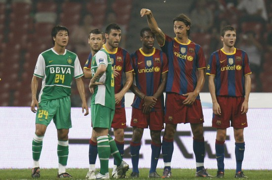 2010年夏季,巴萨再次来到亚洲,尽管哈维、普约尔、皮克、伊涅斯塔、布斯克茨、巴尔德斯、佩德罗和比利亚等8名西班牙国脚无缘来华,但是梅西和伊布,以及阿尔维斯、凯塔等主力都一齐到来。此时的梅西已是金球奖得主,名满天下。