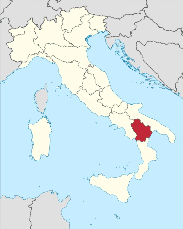 巴西利卡塔大区亦称卢卡尼亚(Lucania),是意大利南部介于靴子前脚跟和后脚跟一个大区。该大区东、西分别与坎帕尼亚、普利亚相邻,南边是卡拉布里亚,有小段海岸线连接第勒尼安海,另一段则在东南方—塔兰托湾—与伊奥尼亚海相连。