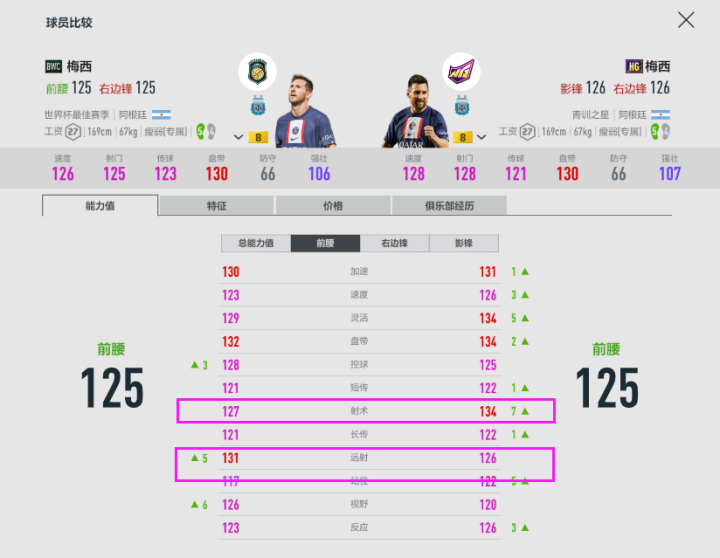 早期BTB、CAP等赛季的梅西虽然综合能力不错,但传中一直都是相对薄弱的环节,而最新的几个赛季卡传中都超过了130,也让喜欢梅西打边路的玩家有了更多进攻手段,右脚能够送出高质量的传中球。