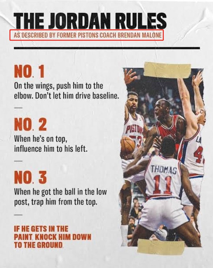 他最著名的头衔,应该是“乔丹规则”发明者,因为他作为防守教练帮助活塞拿下了两连冠,而那支“坏孩子军团”,曾经是公牛和乔丹的阴影。