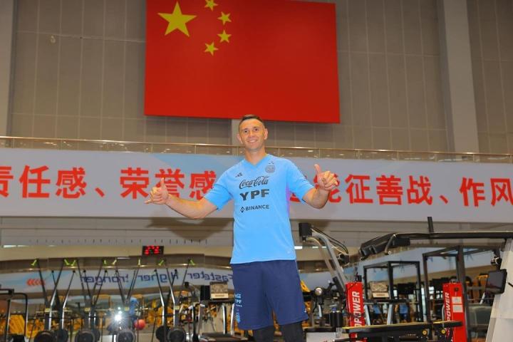 阿根廷门将大马丁晒训练照,背景是五星红旗ETChalmers @懂球帝2023-06-14 10:33阿根廷门将埃米利亚诺-马丁内斯在社交媒体晒出训练期间的照片,其中一张的背景是五星红旗。6月13日,阿根廷队继续前往奥体中心参加训练,备战6月15日与澳大利亚的友谊赛。阿根廷门将埃米利亚诺-马丁内斯在社交媒体晒出多张训练照,其中一张在健身房的照片背景是一面五星红旗。展开更多