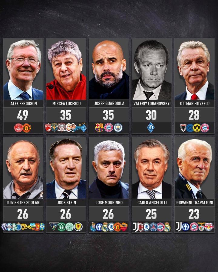 冠军教头的夺冠次数排行,弗格森爵士以47座冠军排名第一。