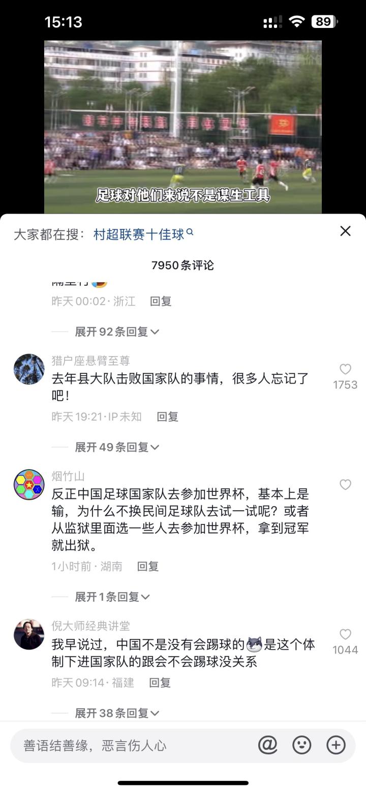 真的要被都超球迷恶心吐了。出来个村超,动不动就吊...王大伦 @懂球帝2023-06-14 15:18真的要被都超球迷恶心吐了。 出来个村超,动不动就吊打国足,特么国足去村超场均赢少于5个算输信不信,一个个的除了复制烂梗抖机灵还会干啥? 说实话,中国足球不行,除了足协之外,这帮250也是元凶。展开更多