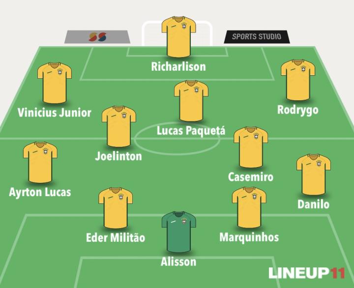 拉蒙今天延续了昨天的首发阵容,看起来乔林顿和埃尔顿已经完全赢得了他的信任,除了这2名新人,其他9人都是巴西队在卡塔尔世界杯上的主力球员。