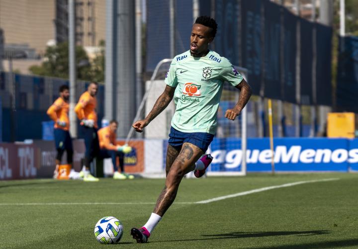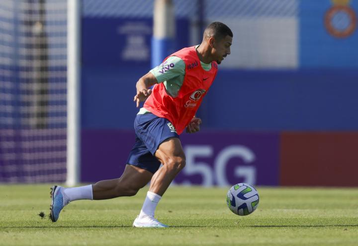 谍报:巴西队开展巴塞罗那第四训,乔林顿、艾尔顿继续首发