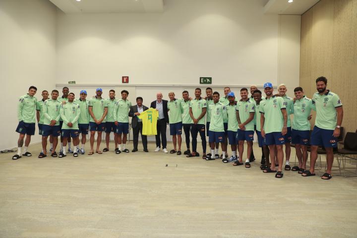 值得一提的是,国际足联主席因凡蒂诺今天到访巴西队下榻的酒店,并与巴西全队合影留念。