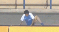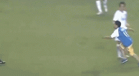 大家都以为都他不过是吹吹牛,没想到开场后不久,他真的从前排跳了下去冲入场地,在迈入球场的一刹那,被现场的保安一个绊马索,直接摁在地上。看台上一片惊愕,因为大家不知道他到底想要干什么。