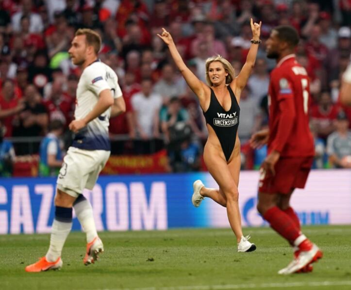 类似的案例还有很多,比如一位名叫做金赛-沃兰斯基的泳装模特,就曾在利物浦和热刺的欧冠决赛中衣着暴露的冲入场地,目的是宣传自己的成人写真和电影。