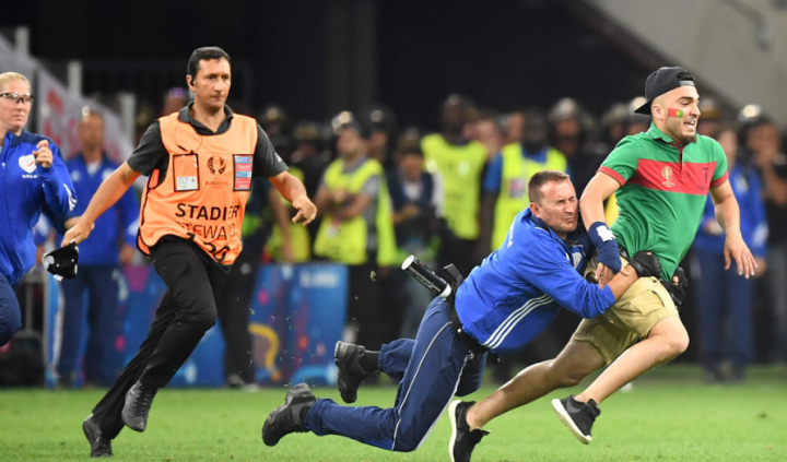 因为面对这种疯狂的行为,没有人知道下一步他会做出什么。此前冲入球场的球迷,做出危险和攻击行为的也不在少数。