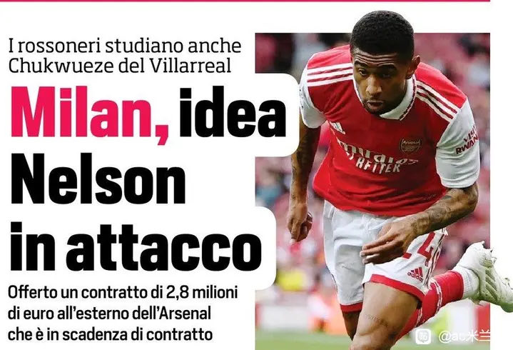 维罗:米兰为内尔森报价2.8M,阿森纳3.5M;球员一直在向米兰示好 内尔森已经与阿森纳达成了口头续约协议,但他还没有签约,因为他知道自己有机会为米兰效力,而他一直在向米兰示好。米兰每年的报价是每年280 万,而阿森纳则提供 350 万。 内尔森在这一点上仍未有定论,但阿森纳对续约充满信心。 顺便说一下,如果米兰签下内尔森,他将填补非欧两个空缺之一。