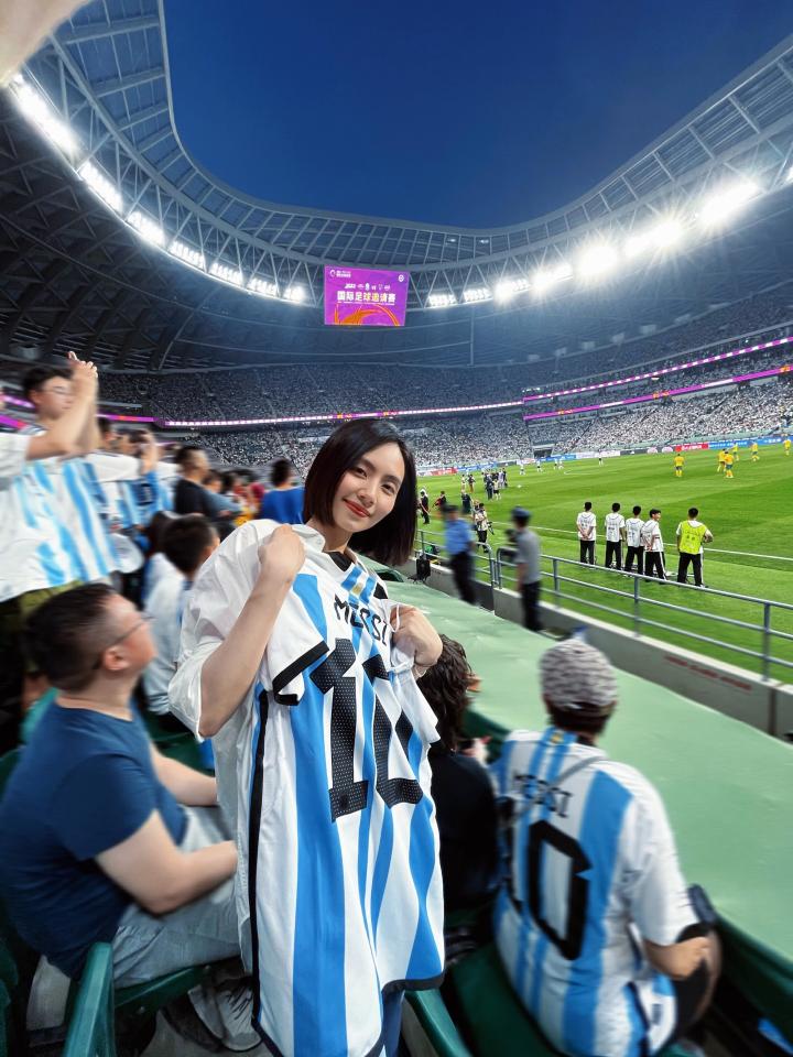 刘惜君晒现场观战梅西照片:远远看到,很开心!LaPulga @懂球帝2023-06-16 18:14中国女歌手刘惜君更新社交媒体,晒出现场观战梅西比赛的照片。刘惜君昨日出现在了工人体育场看台,观战了阿根廷2-0击败澳大利亚的比赛。在个人社交媒体,刘惜君晒出观战梅西比赛的照片,并发文写道:“远远看到,很开心!”展开更多