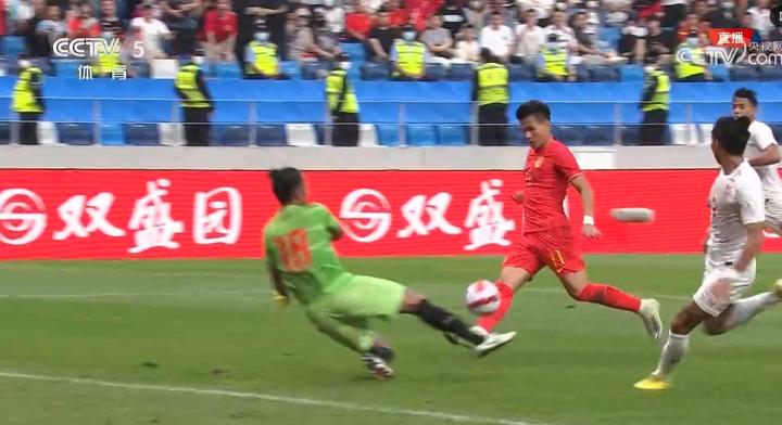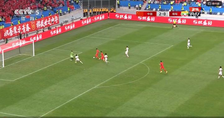其二是第35分钟王上源送出的过顶长传。张琳芃右路中线完成抢断,随后球权交给王上源,王上源观察到缅甸身后空档,直接过顶长传至缅甸防线身后,这一传球精准且带有穿透力,仿佛指引着前场球员拿球。林良铭也不负所望反越位拿到了皮球,可惜挑射空门的射门被对方后卫神奇救险。