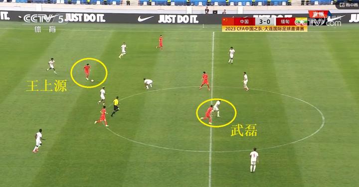 可以看到,王上源在国足中场的触球机会多,传球精准,节拍器地位尽显。